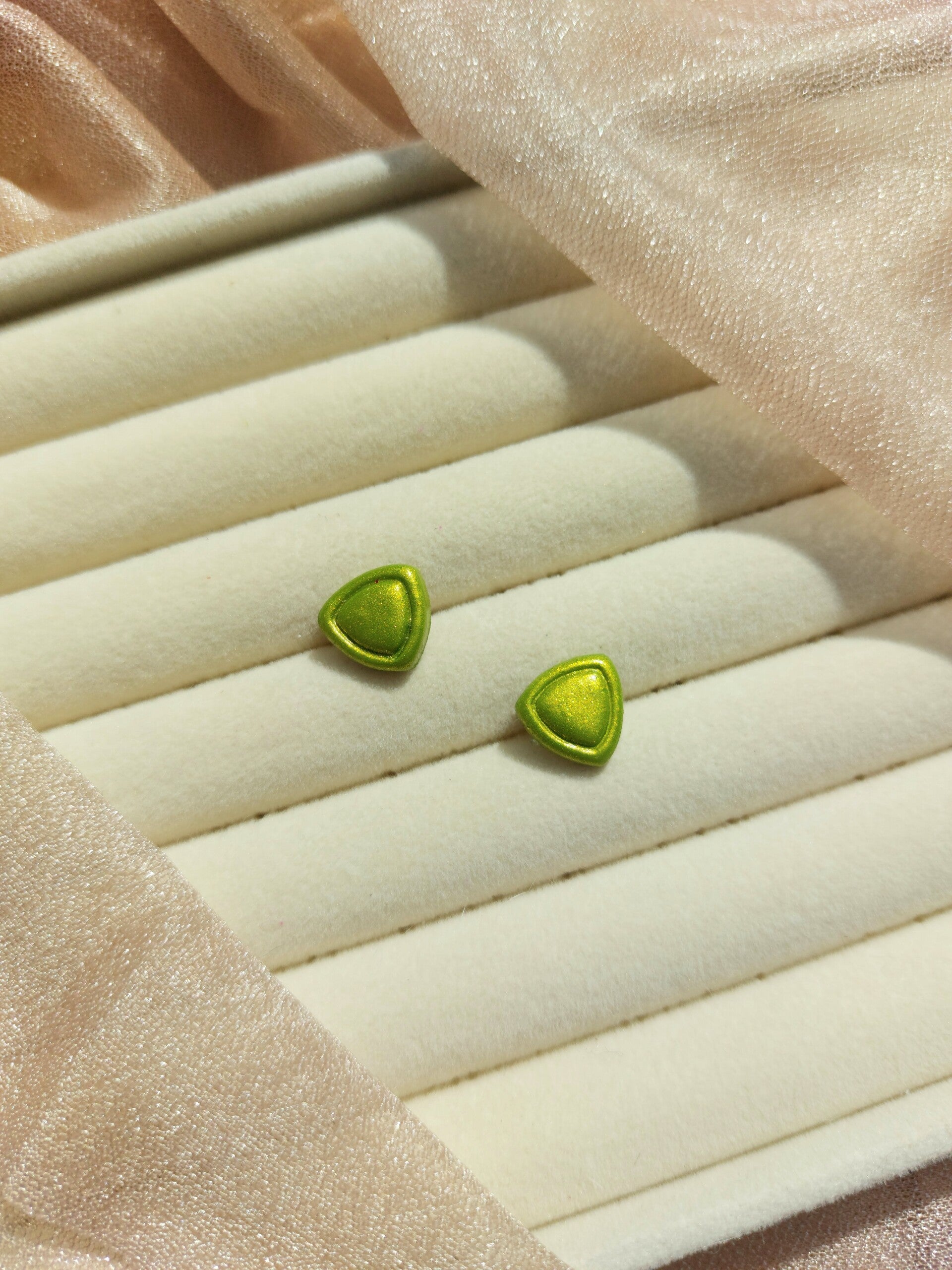 De Emma oorbellen zijn kleine, driehoekige studs die eenvoudig en klassiek zijn. De oorbellen zijn gemaakt van polymeerklei, waardoor licht van gewicht en de hele dag te dragen.