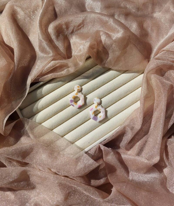 De Sofia oorbellen zijn gemaakt van lichtgewicht polymeerklei en perfect voor dagelijks draagplezier.