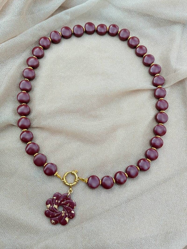 De Elodie ketting is een elegante, handgemaakte creatie van polymeerklei kralen. Elke kraal wordt met zorg gevormd en samengebracht tot een verfijnd geheel. De ketting kan gedragen worden met of zonder de bedel, waardoor je moeiteloos kunt variëren tussen een subtiele of juist opvallende look. Perfect om elke outfit een vleugje klasse en originaliteit te geven.