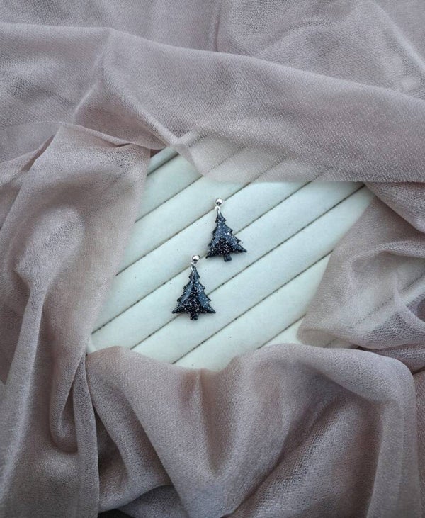 Handgemaakte kerstboom-oorbellen van klei, vol fijne details en warme kerstsfeer. Licht van gewicht en uniek in vorm: de perfecte feestelijke finishing touch voor elke outfit.