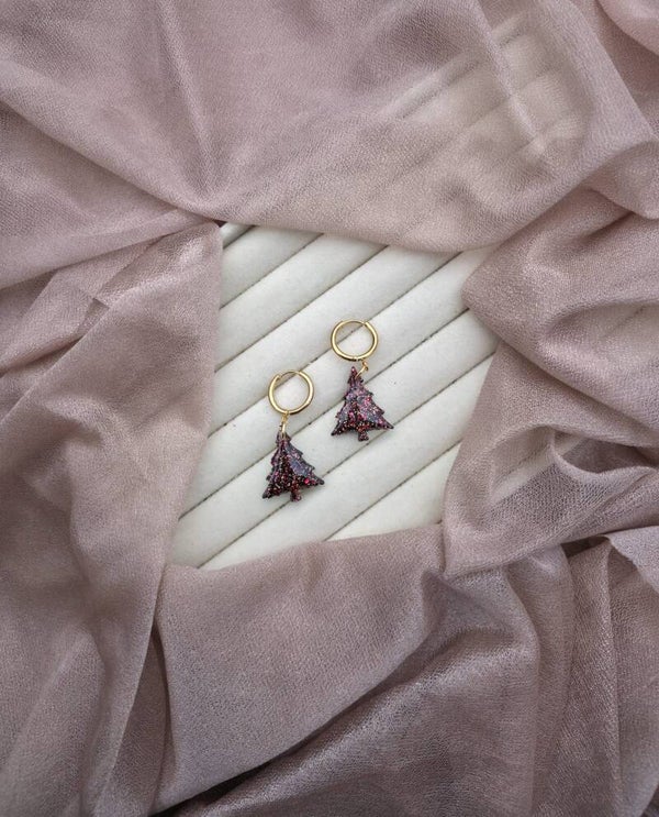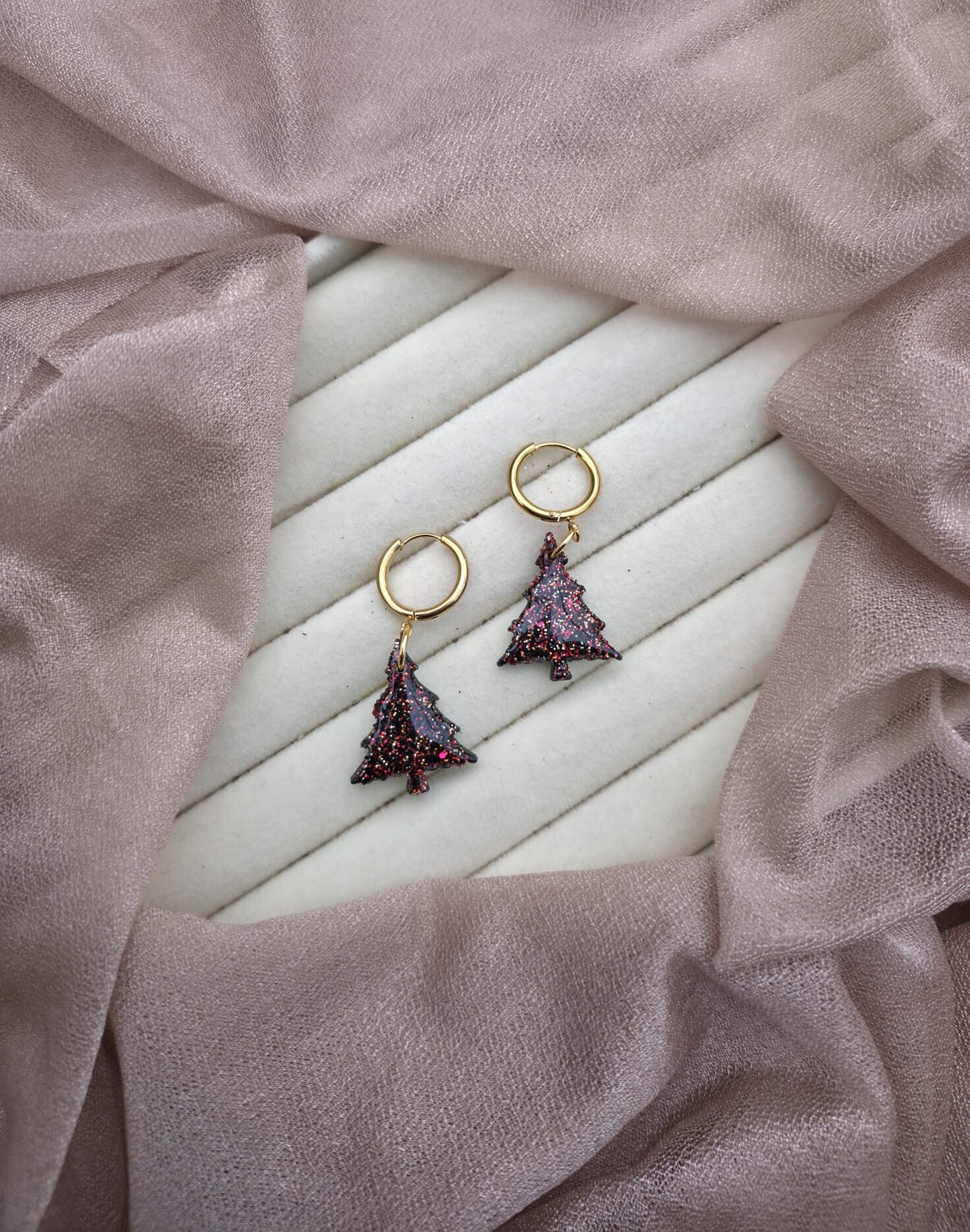 Handgemaakte kerstboom-oorbellen van klei, vol fijne details en warme kerstsfeer. Licht van gewicht en uniek in vorm: de perfecte feestelijke finishing touch voor elke outfit.
