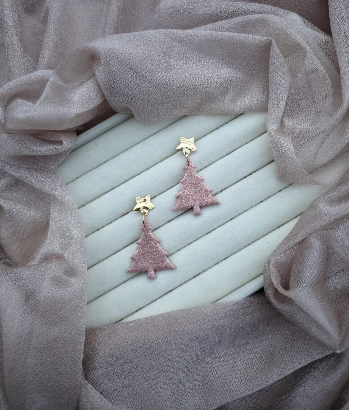 Handgemaakte kerstboom-oorbellen van klei, vol fijne details en warme kerstsfeer. Licht van gewicht en uniek in vorm: de perfecte feestelijke finishing touch voor elke outfit.