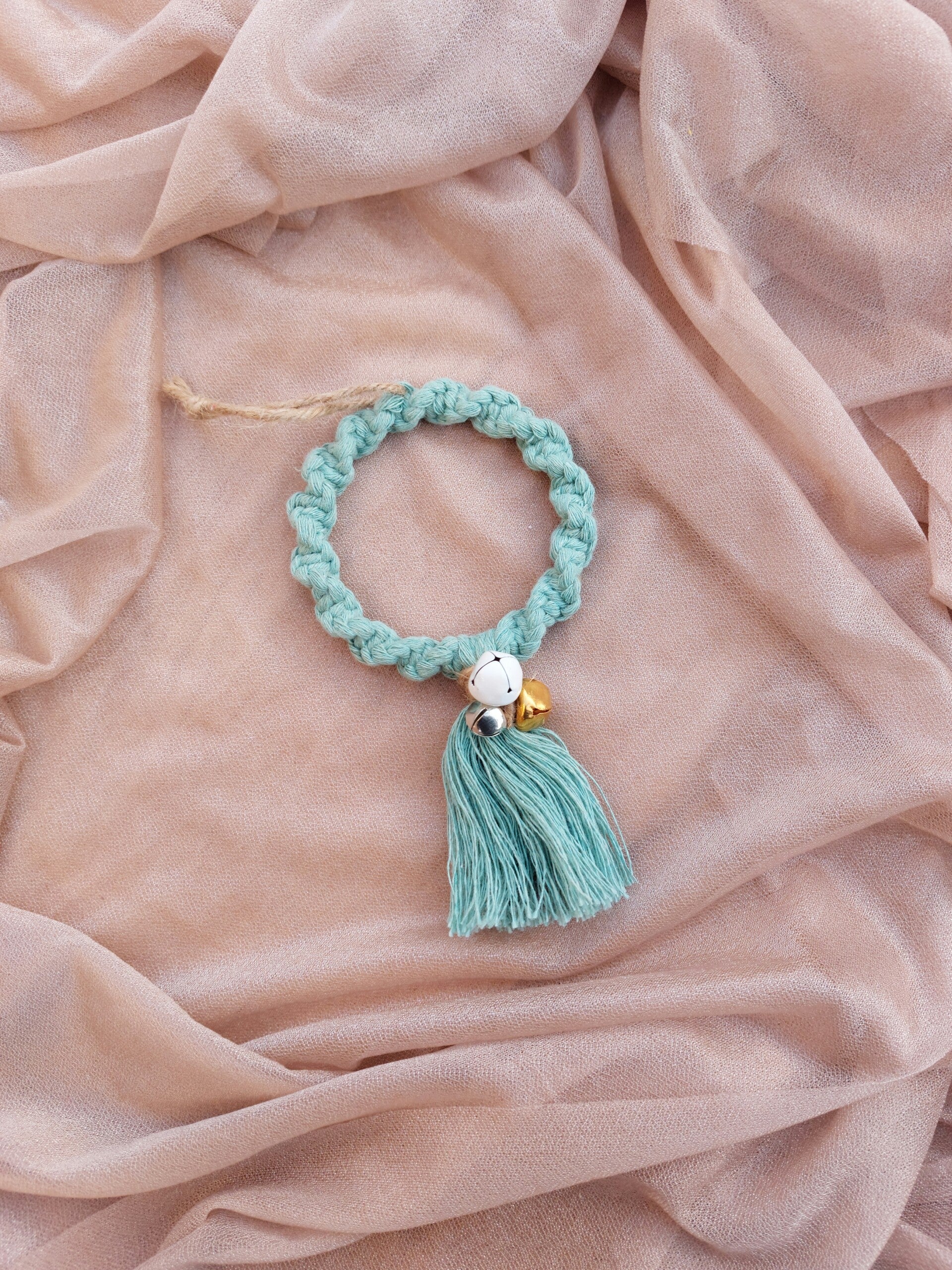 Voeg een feestelijk tintje toe aan je kerstdecoratie met de handgemaakte Klingelende Krans. Dit ronde ornament is ca. 16 cm lang, met een sierlijke tassel en kleine belletjes die een speels, kerstachtig geluid geven.