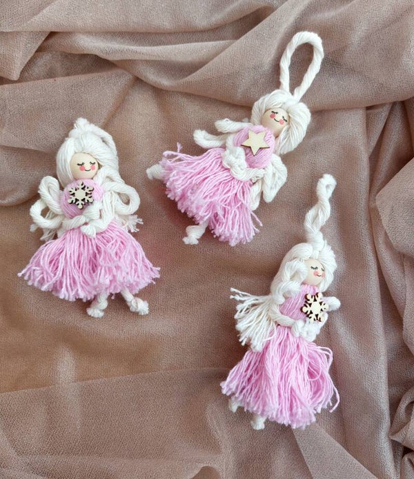 Dit lieve macramé engeltje is een prachtige, subtiele toevoeging aan je kerstdecoratie. Het engeltje is ca. 10 cm lang en verkrijgbaar in vier kleurvarianten: