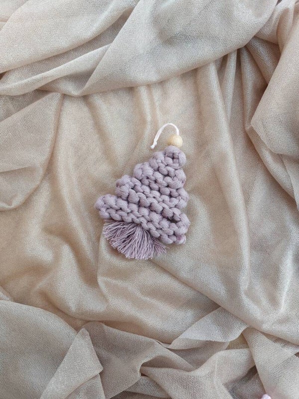 Breng een warme, feestelijke sfeer in je kerstboom met dit handgemaakte macramé kerstboom ornament. Verkrijgbaar in licht roze of paars, met een lengte van ca. 10 cm en afgewerkt met een houten kraal voor een charmant detail.